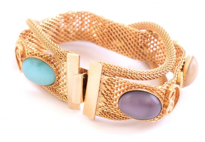 Aranyozott fém karkötő köves berakásokkal, h: 18,5 cm