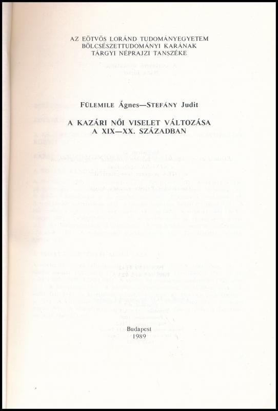 Fülemile Ágnes, Stefány Judit: A kazári női viselet változása a XIX-XX... https://www.darabanth.com/en/388-Online-auction/388.0/Books/Books-Social-sciences~1000013/Fulemile-Agnes-Stefany-Judit-A-kazari-noi-viselet-valtozasa-a-XIX-XX-szazadban-Dissertat~II2325459