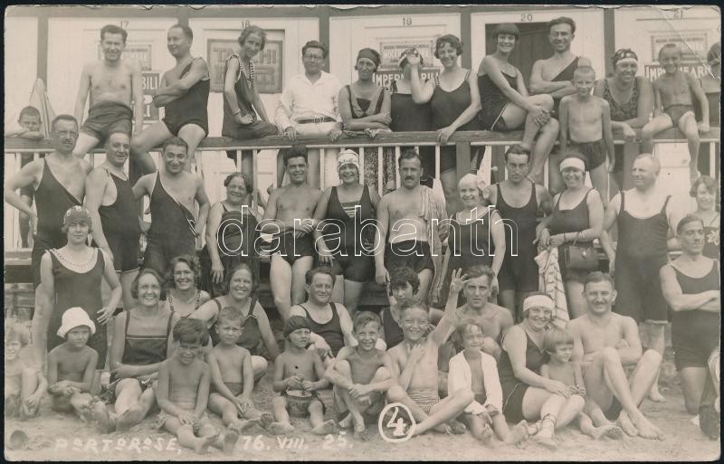 1925 Portorož, Szlovénia, fürdőzők, fotólap, sarkán törésnyomok, 14×9 ...