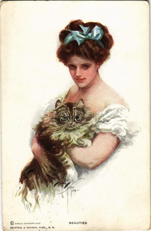 https://www.darabanth.com/en/388-Online-auction/388.0/Postcards/Art-postcards~2000082/1910-Beauties-Lady-with-cat-Reinthal-Newman-Series-101-s-Harrison-Fisher-EK~II2176900