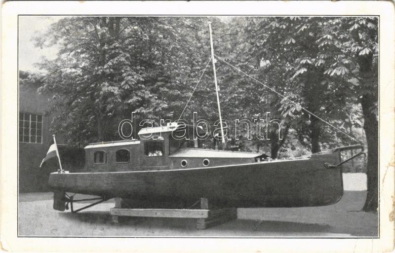 Description: Budapest III. Végh Rezső kishajó építő, elektromos és gépműhely reklámlapja, motorcsónak, magyar zászló. Műhelytelep: Óbudai rakpart 9. Lakás: Lajos utca 167. (non PC) (EB)