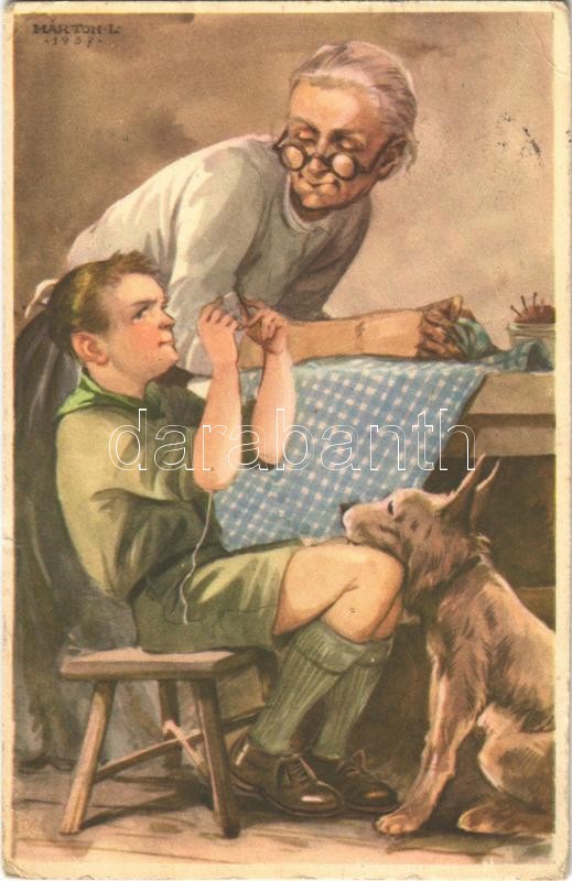 1937 A cserkész feljebbvalóinak jószívvel engedelmeskedik. Cserkész levelezőlapok kiadóhivatala / Hungarian boy scout art postcard s: Márton L. (EK)