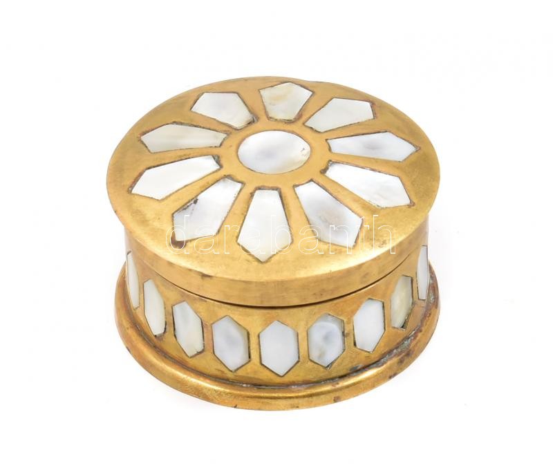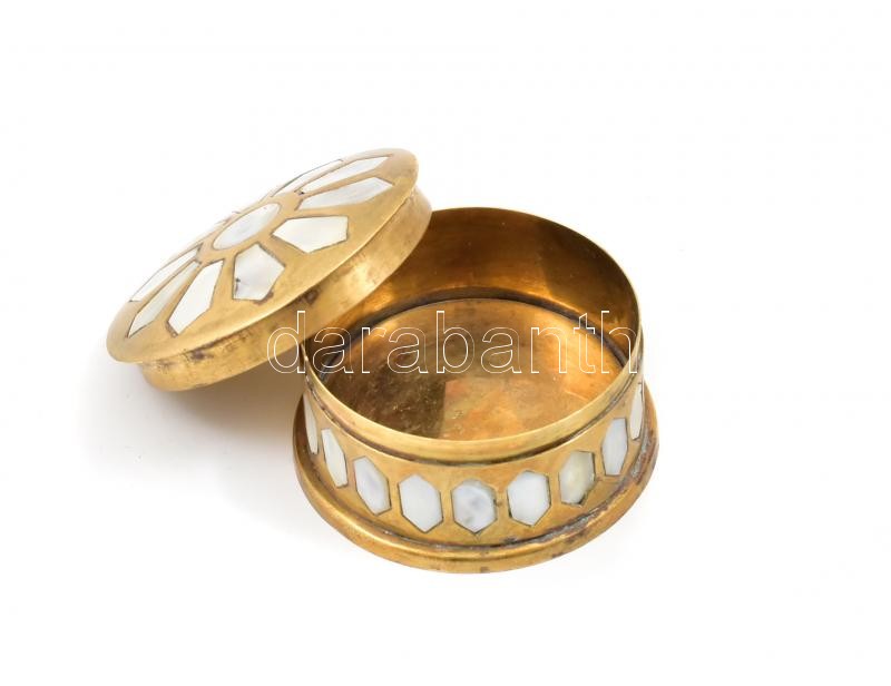 Réz dobozka gyöngyház berakással d:6,5 cm