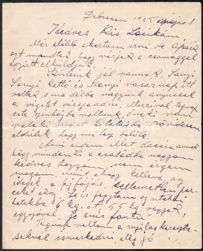 1935 Debrecen Magánlevél, melyben a nyilasok gyűlésén tett pozitív benyomásairól is beszámol a levélíró 3 beírt oldal