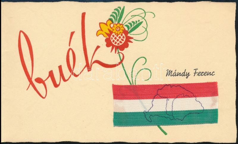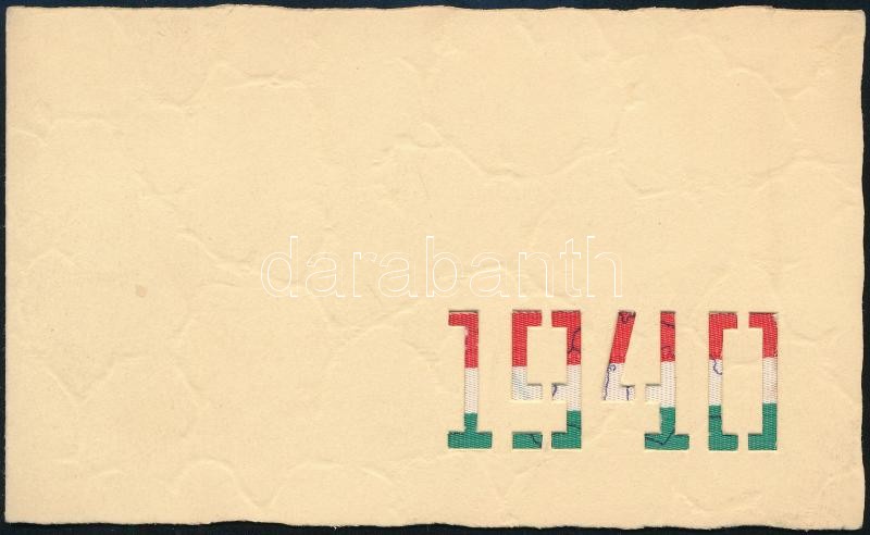1940 A késÅ‘bbi Polgári Honvédelmi Érdemkereszttel kitüntetett Mándy Ferenc nyomdai vezetÅ‘ dekoratÃv kihajtható, nemzeti szÃnű szalagon Nagy-Magyarországot ábrázoló újévi üdvözlÅ‘kártyája, szép állapotban