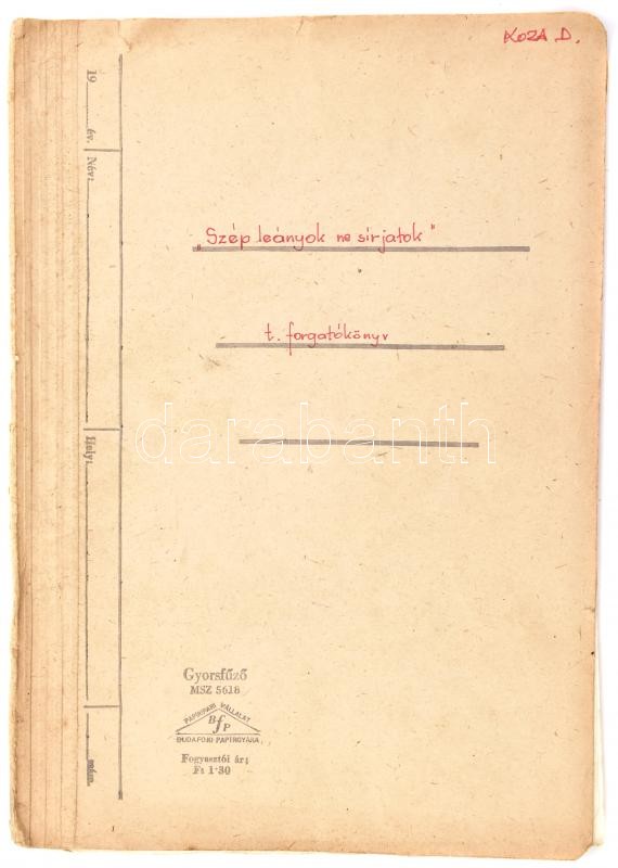 https://www.darabanth.com/en/389-Online-auction/389.0/Art-and-other-collectibles/Historical-documents-manuscripts~19/1970-Szep-leanyok-ne-sirjatok-technikai-forgatokonyv-irta-Zimre-Peter-rendezo-Mesza~II2338178