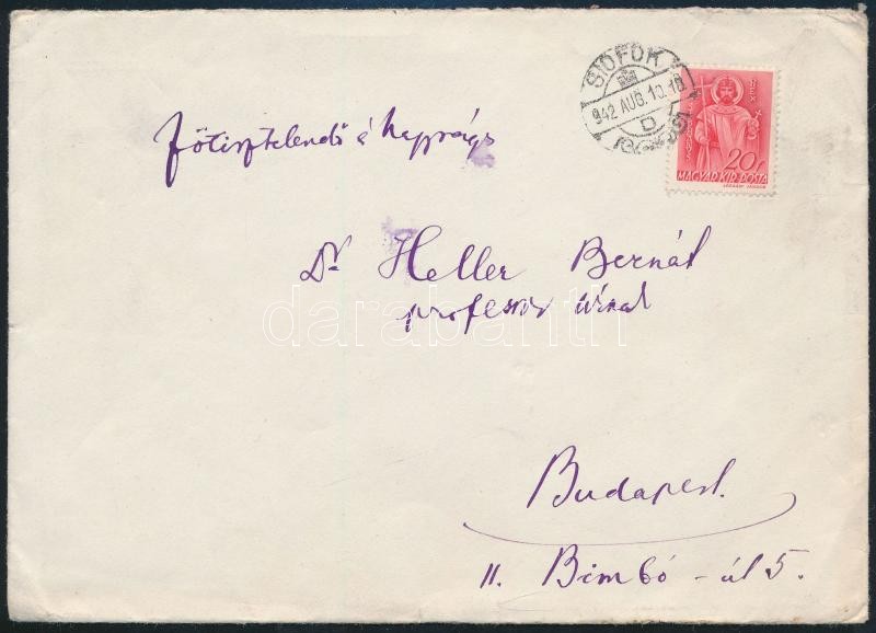 dr. Komlós Ottó siófoki rabbi saját kézzel írt levele Heller Bernátnak melyben egy mágocsi tanítónő ügyében jár közben. 3 beírt oldal, borítékkal.