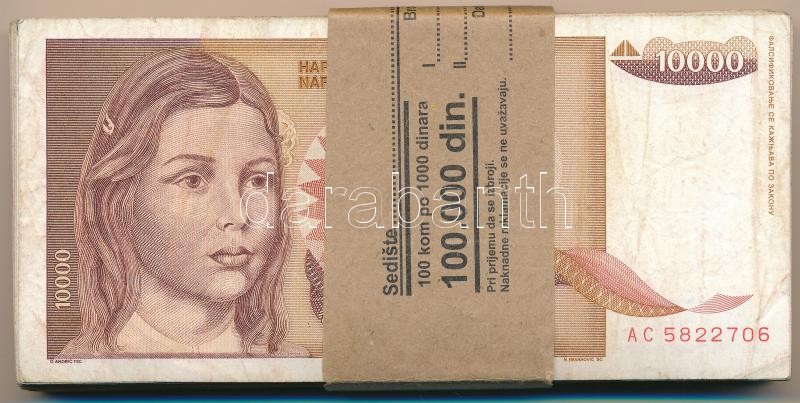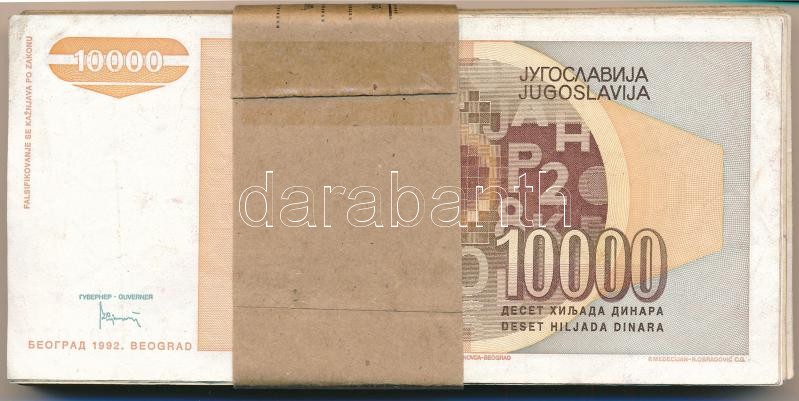 Description: Jugoszlávia 1992. 10.000D (92x) nem hozzáillő banki kötegelővel T:III,III-