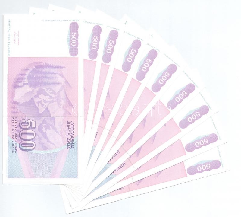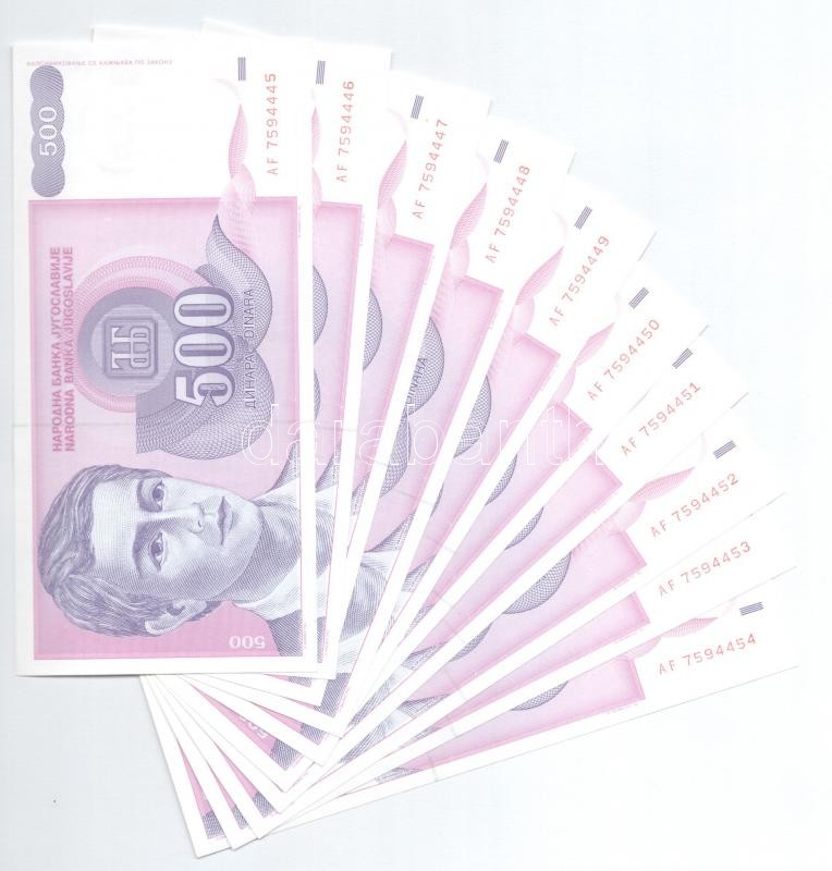 Jugoszlávia 1992. 500D (10x) sorszámkövetők "AF 7594445 - AF 7594454" ...