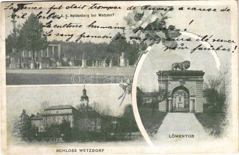 Description: 1914 Heldenberg, Der k.k. Heldenberg bei Wetzdorf (Glaubendorf), Schloss Wetzdorf, Löwentor / K.u.K. military cemetery, gate, castle. Art Nouveau, floral (fl)