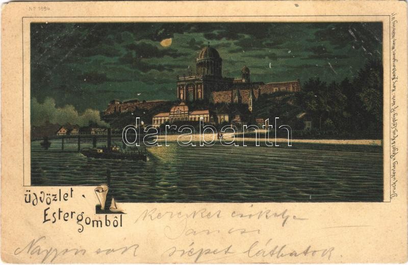 1900 Esztergom, Bazilika este. Regel & Krug No. 1896. litho (EK)