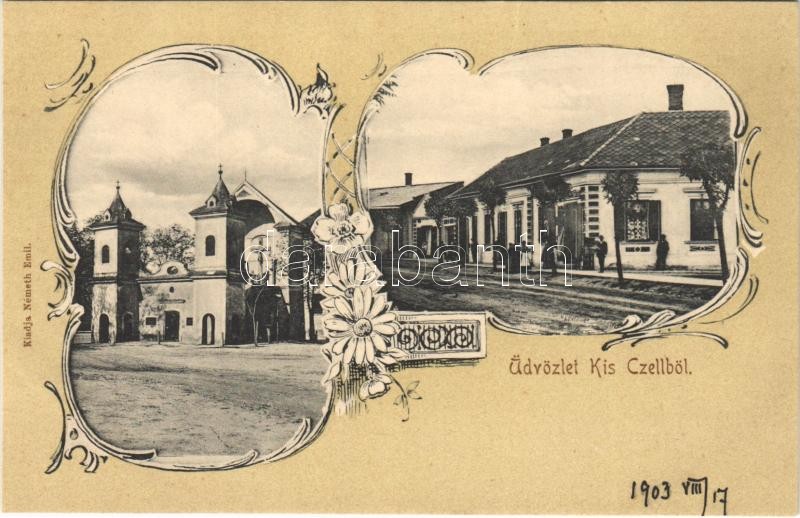 1903 Kiscell, Celldömölk; Kálvária, üzlet. Németh Emil kiadása, floral...
