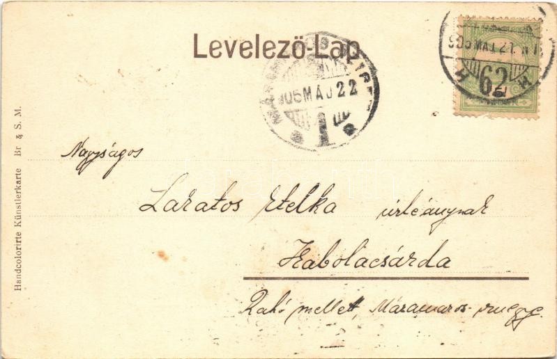 1905 Budapest VI. Nyugati pályaudvar, vasútállomás, villamos, "Jegyváltás az alagi lóversenyhez". Taussig Arthur 5109. (EK)
