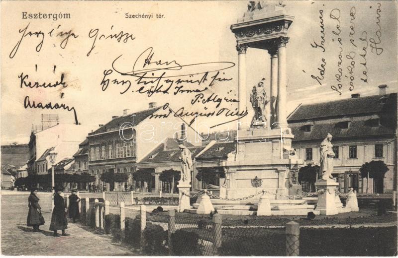 1905 Esztergom, Széchenyi tér, Szentháromság szobor