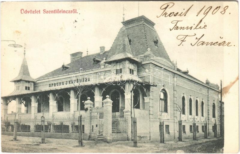 1908 Budapest XVIII. Pestszentlőrinc, Pusztaszentlőrinc, Szentlőrinc; Sprung J. kávéháza. Fischhof Henrik kiadása (Rb)