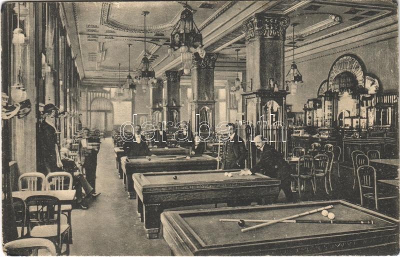 1911 Budapest VIII. Spolarich Nagy Kávéház, biliárdasztalok, belső. József körút 37-39. (EK)