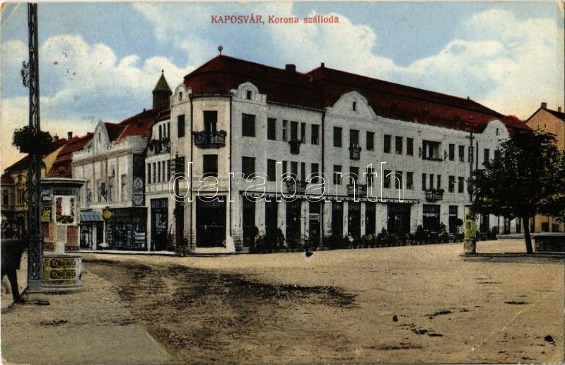 https://www.darabanth.com/en/389-Online-auction/389.0/Postcards/Hungary~1500005/1915-Kaposvar-Hotel-Korona-szalloda-etterem-es-kavehaz-uzletek-hirdetooszlop-cirkusz-re~II2138161