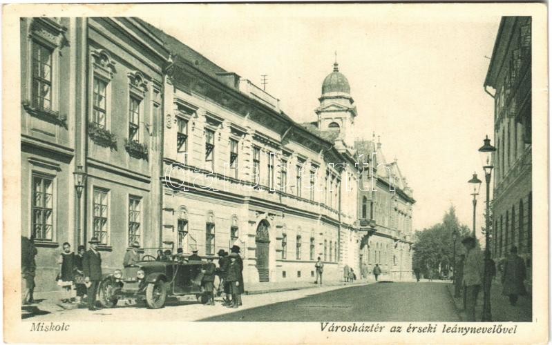 1930 Miskolc, Városház tér, érseki leánynevelő, automobil