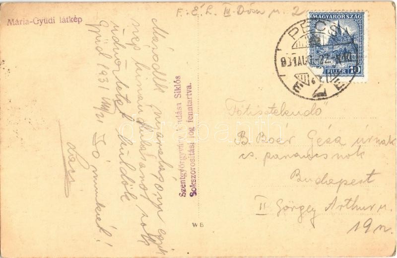 1931 Máriagyűd (Siklós), Fájdalmas Mária. Szentgyörgyváry kiadása. pho...