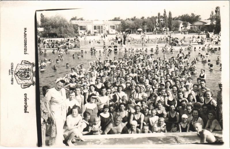 1941 Hajdúszoboszló, Gyógyfürdő, fürdőzők. Czeglédy photo