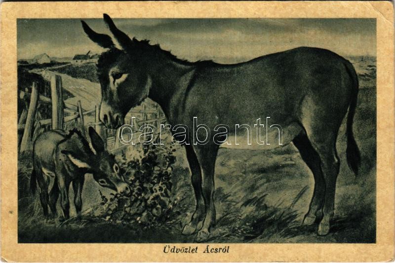1944 Ács, üdvözlőlap szamárral. Winternitz Jenő kiadása (EK)