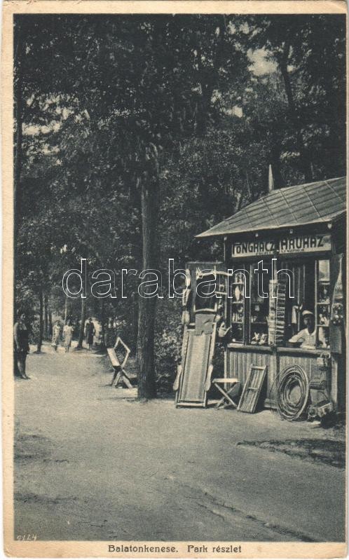 Balatonkenese, Park, Pongrácz áruház. Pfeifer felvétele. P. A. kiadása (vágott / cut)