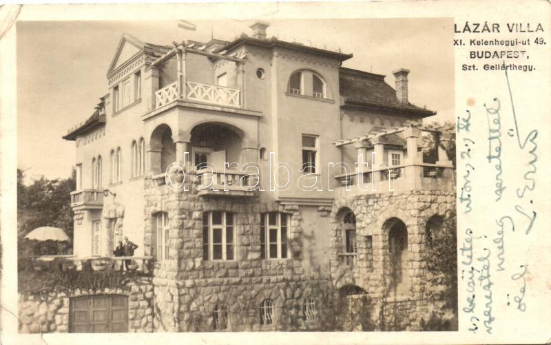 https://www.darabanth.com/en/389-Online-auction/389.0/Postcards/Hungary~1500005/Budapest-XI-Gellerthegy-Kelenhegyi-ut-49-Lazar-villa-EK~II1262130