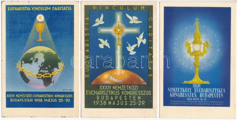 Description: 1938 Budapest XXXIV. Nemzetközi Eucharisztikus Kongresszus / 34th International Eucharistic Congress - 3 db képeslap / 3 postcards (Gebhardt, Szilágyi M. János)