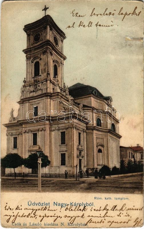 Nagykároly, Carei; Római katolikus templom. Kiadja Csókás László / Cat...