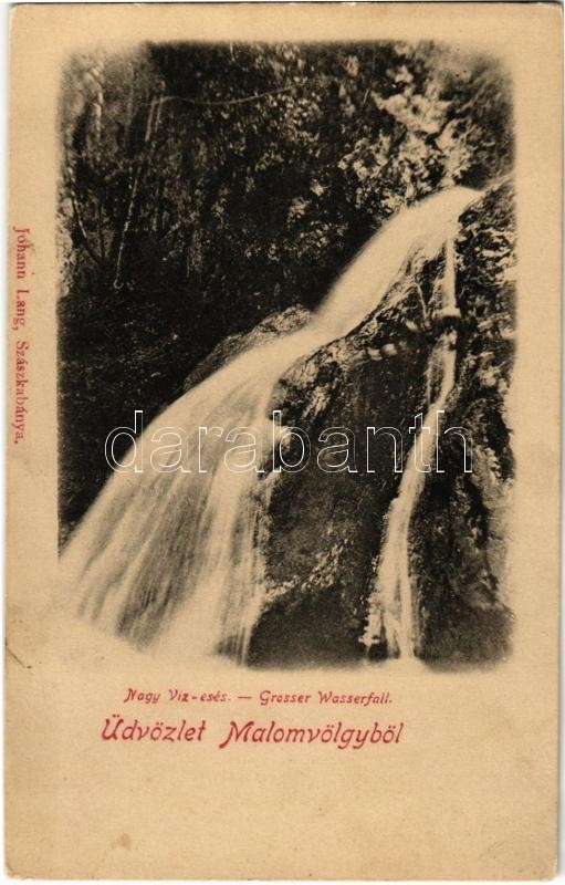 Szászkabánya, Németszászka, Sasca Montana; Malomvölgy, Nagy vízesés. Johann Lang kiadása / Grosser Wasserfall / waterfall in Cheile Susare (EK)