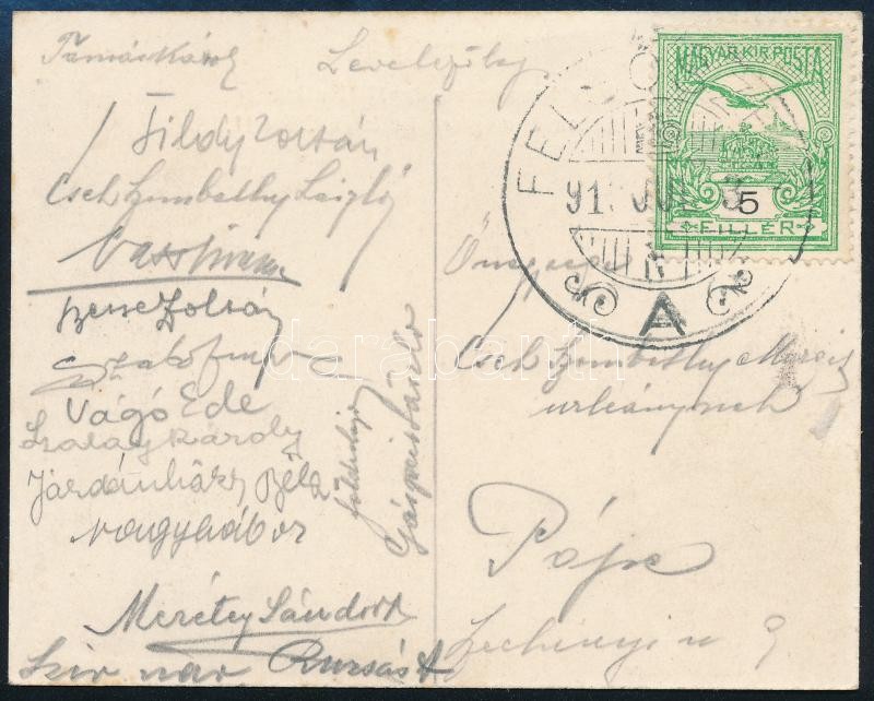 1910 Tildy Zoltán (1889-1961) leendő államfő és mások által aláírt mini képeslap