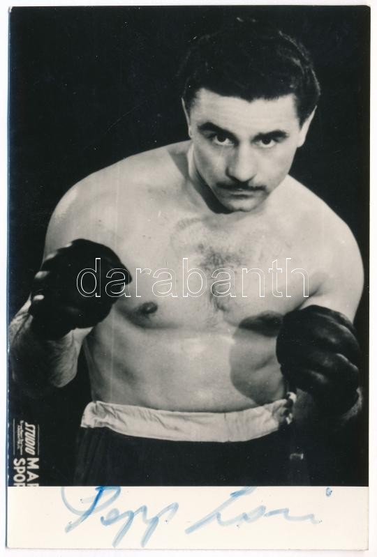 Papp László (1926-2003) ökölvívó aláírása az őt ábrázoló képen