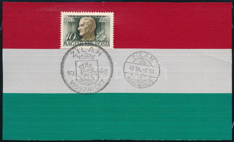 1940 Nemzeti színű szalag bélyeggel és "Zilah visszatért" pe...