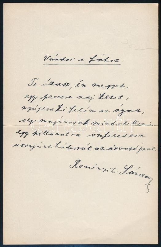 https://www.darabanth.com/en/39-Major-auction/39.1/Art-paper-and-other-collectibles/Historical-documents-manuscripts~16035/Remenyik-Sandor-1890-1941-kolto-autograf-Vandor-a-tohoz-c-versenek-kezirata-szakadas~II2719384