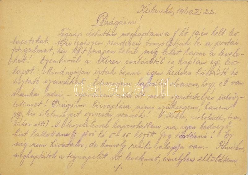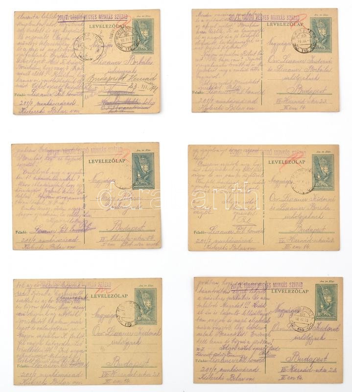 Description: 1940 201/7. Tábori Vegyes Munkás Század (Tábori Zsidó Munkás Század) levelezőlapok, 6 db, munkaszolgálatos által hazaküldött lapok a mindennapi élet beszámolóival, családról való érdeklődéssel
