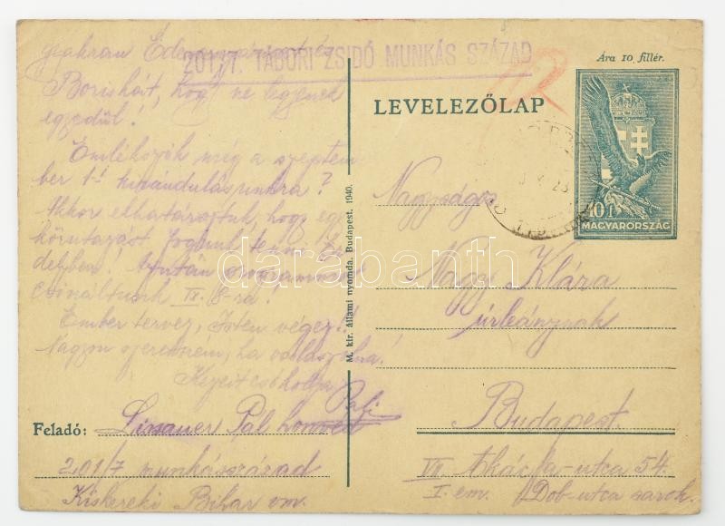 1940 201/7. Tábori Vegyes Munkás Század (Tábori Zsidó Munkás Század) l... https://www.darabanth.com/en/39-Major-auction/39.1/Art-paper-and-other-collectibles/Judaica~15985/1940-2017-Tabori-Vegyes-Munkas-Szazad-Tabori-Zsido-Munkas-Szazad-levelezolapok-6-db-mu~II2726328