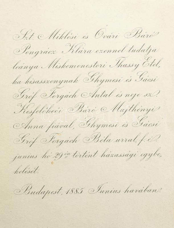 cca 1885-1950 ghymesi és gácsi gróf Forgách-család hagyatéka, benne 1927-1930 kirándulások, nyaralások, vadászatok fotóalbuma (Gyhmes, Detva), benne 97 fotóval. Valamint további 5 fotó. Továbbá Gróf Forgách Béla: Élményeim és emlékeim 89 év alatt. Keszthely, 1939, Mérei-ny., 48+1 p. + 2 megírt képeslap. Valamint házassági és keresztelési kivonatok, valamint 2 bécsi hivatali értesítés és 1 db hivatali levél, valamint esküvői meghívó és nyomtatvány.