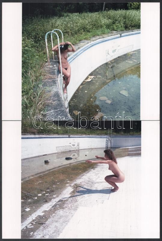 Description: cca 1993 Menesdorfer Lajos (1941-2005) budapesti fotóművész hagyatékából, 3 db vintage NEGATÍV (6x6 cm) hozzáadva 3 db modern nagyításban készült nézőképet (medencés játékok), 24x17,7 cm