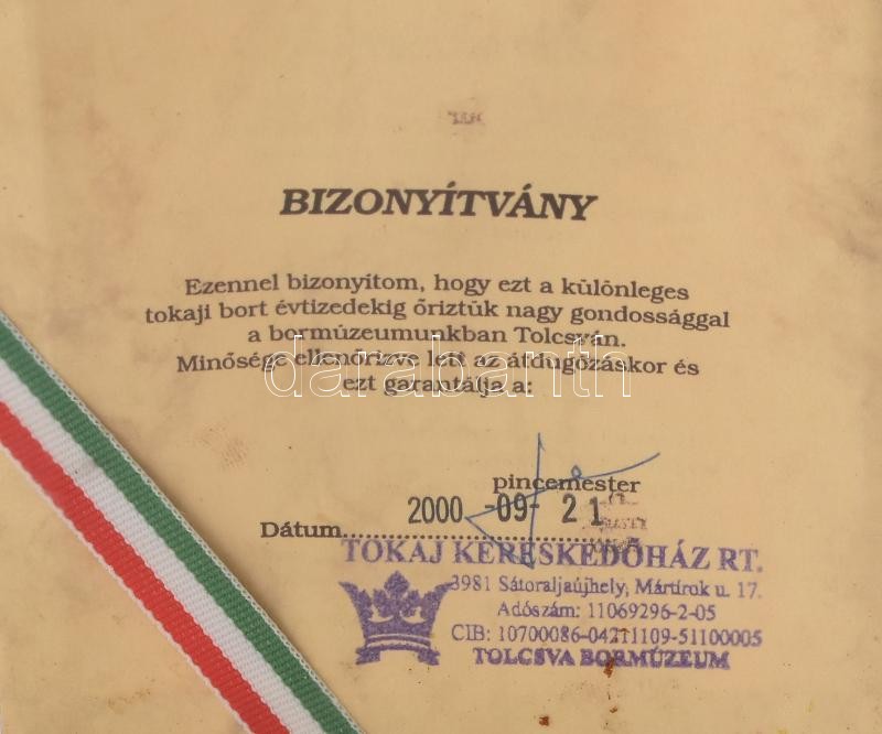 1956 5 puttonyos tokaji aszú, szakszerűen tárolva, fa tartóban