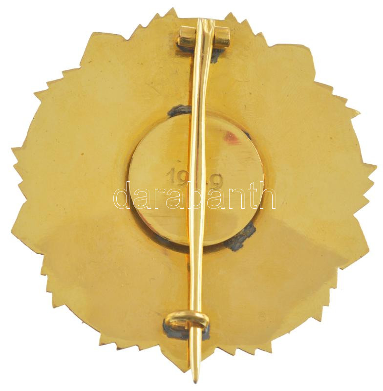 1949. "Magyar Népköztársasági Érdemrend I. fokozata" zománco... https://www.darabanth.com/en/39-Major-auction/39.1/Numismatics/Faleristics-medals-orders-badges~16024/1949-Magyar-Nepkoztarsasagi-Erdemrend-I-fokozata-zomancozott-aranyozott-Br-kituntetes-~II2730052