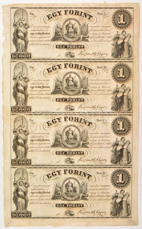 Description: 1852. 1Ft "Kossuth bankó" kitöltetlen "A","B","C","D" négyes ívben T:I,I- / Hungary 1852. 1 Forint block of 4 (A,B,C,D) without date and serial number C:UNC,AU Adamo G122