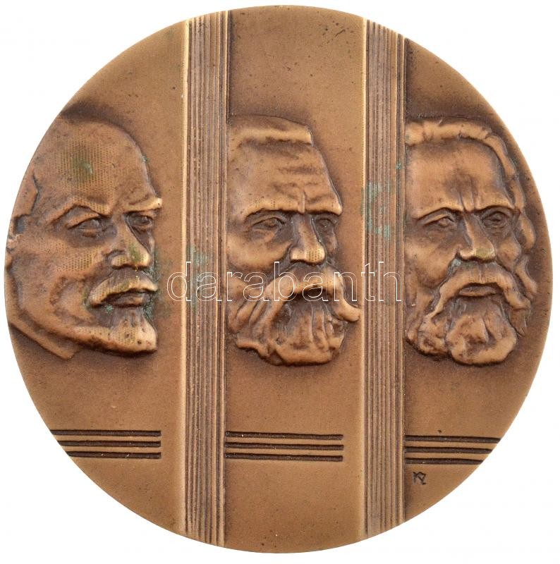 Képíró Zoltán (1944-1981) 1978. "AZ MSZMP KB. Párttörténeti Intézete 1948-78 / Lenin,Engels,Marx" kétoldalas bronz emlékplakett (98mm) T:1- patina, egyik oldalán két kis ráragasztott papír /