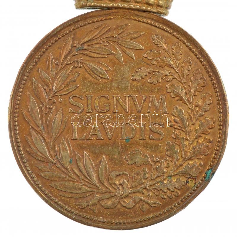 Description: 1890. "Bronz Katonai Érdemérem a katonai érdemkereszt szalagján, kardokkal" aranyozott bronz kitüntetés mellszalagon T:2 aranyozás kopott, ph. / Hungary 1890. "Bronze Military Merit Medal on a war ribbon with swords (Signum Laudis)" gold plated bronze decoration with ribbon C:XF worn gilding, edge error NMK 246.