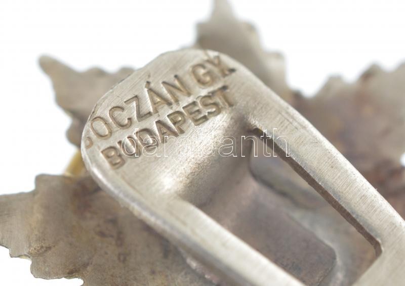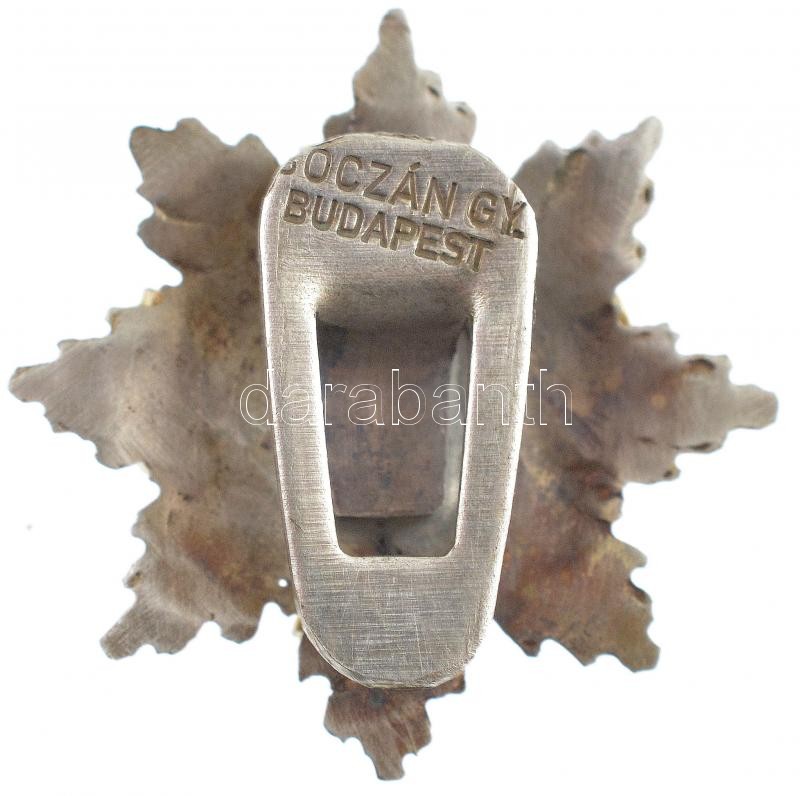 Description: 1922. "A Magyar Vöröskereszt Érdemcsillaga" aranyozott, zománcozott gomblyukjelvény miniatűr, hátlapon "BOCZÁN GY BUDAPEST" gyártói jelzéssel (~22x22mm) T:1- kis zománchiba /