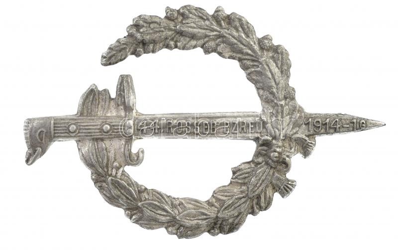 Osztrák-Magyar Monarchia 1916. "44. Rossebb Ezred 1914-1916" ezüstözött fém sapkajelvény (28x43mm) T:1-