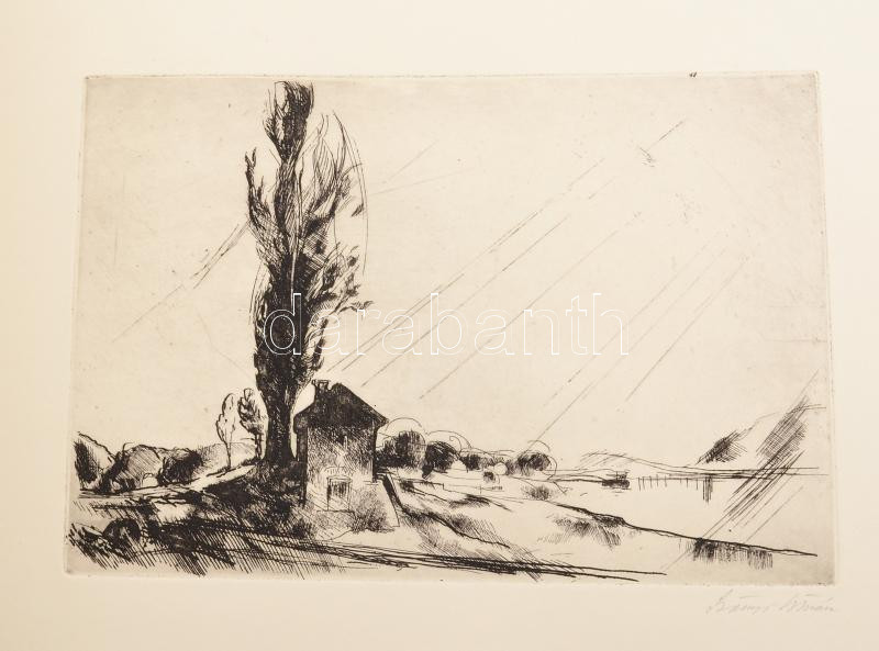 Szőnyi István (1894-1960): Rézkarc album, 100 db-os rézkarc, papír, 44x61 cm minden lap jelzett, Bp., 1956 Koller Galéria (Koller György kiadása) Korabeli haránt alakú bőr kötésben, réz veretekkel, karton tékában. / 100 pcs of etchings on paper, all of them signed, in original album issued 1956