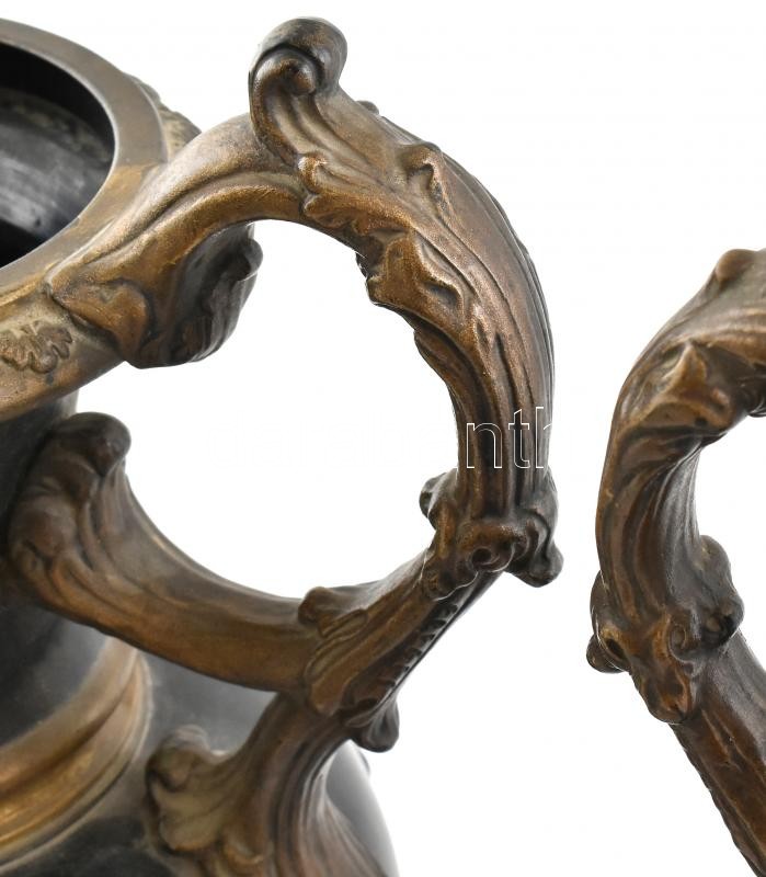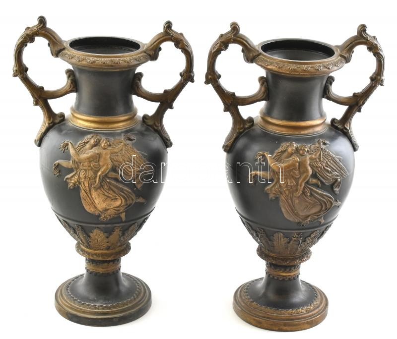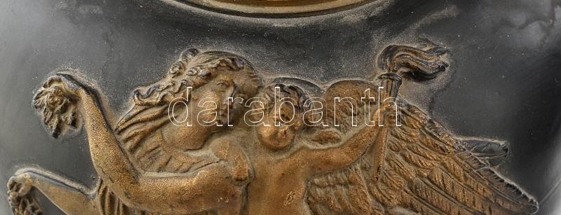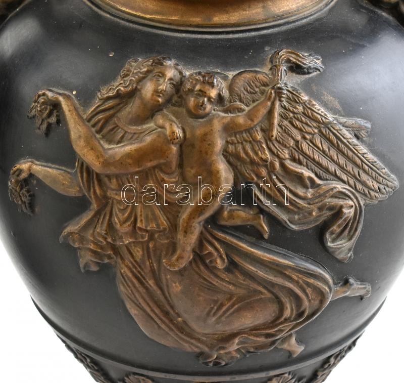 Cseh. antik, terrakotta vázapár, jelzett, palástján relief, angyal jelenettel, korának megfelelő állapotban, Johann Maresch 1890 körül, m: 40 cm