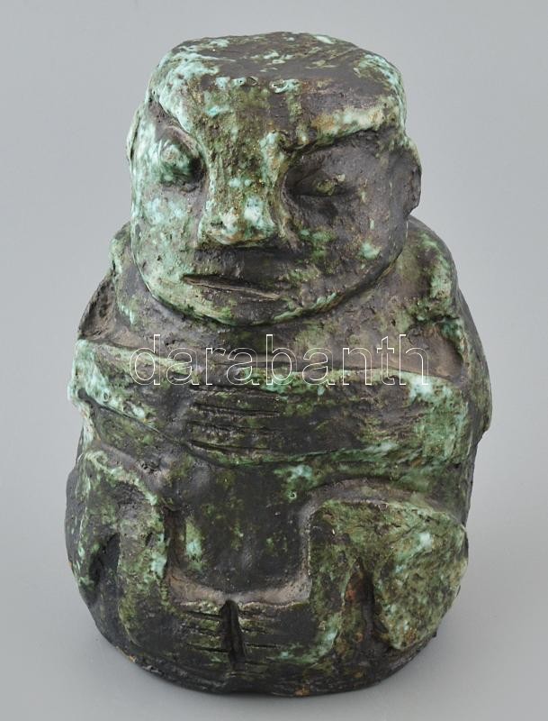 Gádor István (1891-1984): Törzsi figura. Mázas kerámia, jelzett, hibátlan. m:21,5cm.