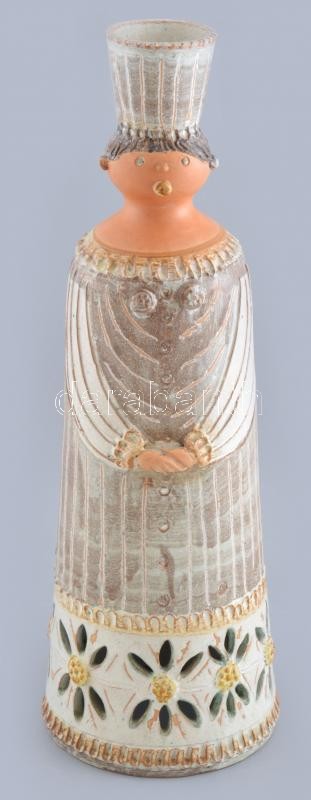 Kiss Roóz Ilona (1920-2010): Női figura, mázas kerámia, kézzel festett...