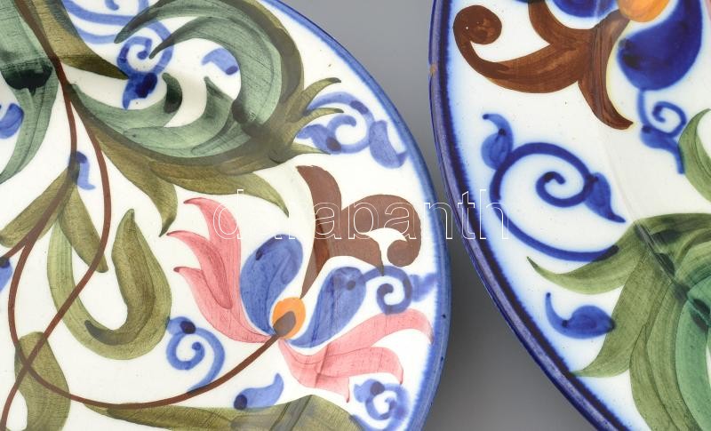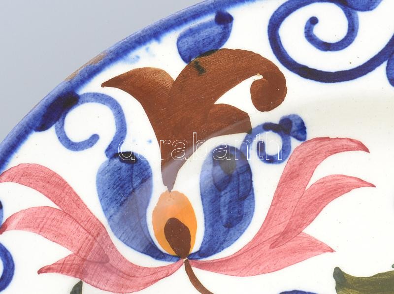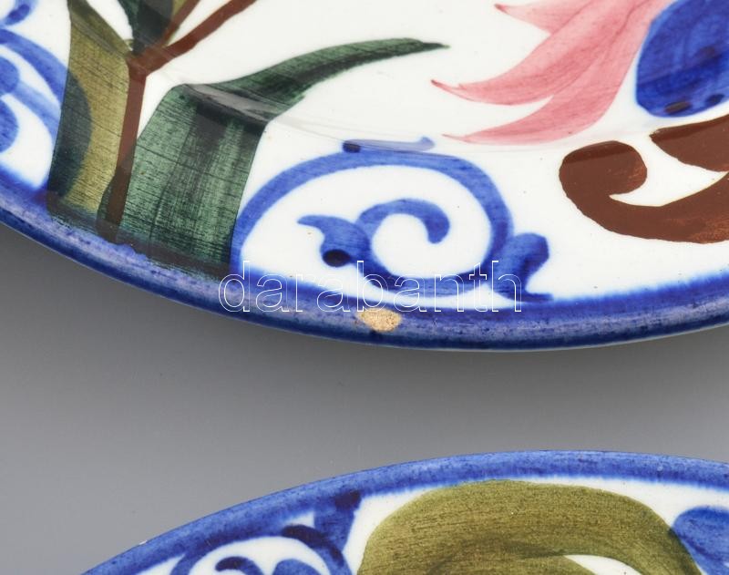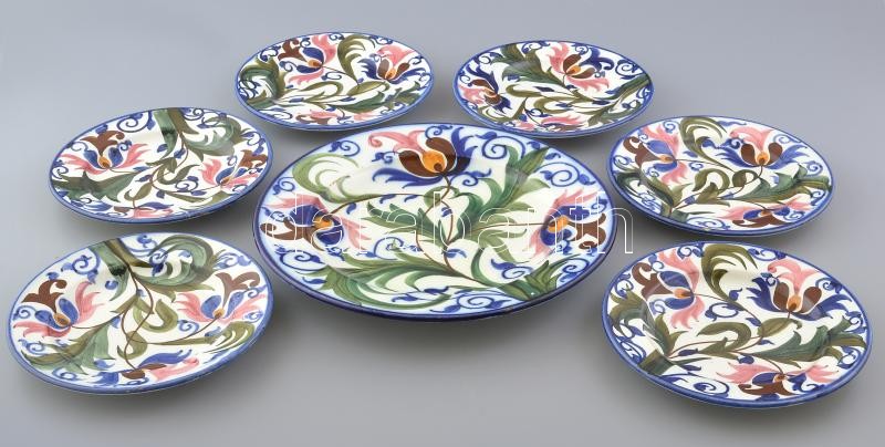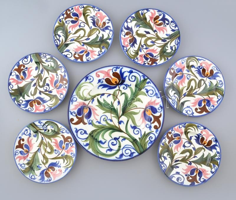Láng és Mayer Városlőd. Kerámia fali tányér készlet. 6+1 darabos. Jelzett, kézzel festett, d: 31cm, 21 cm